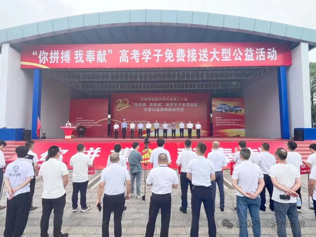 6月5日由瀘州市道路運輸協(xié)會承辦的第二十屆“你拼搏、我奉獻(xiàn)”高考學(xué)子免費接送公益活動在西南商貿(mào)城五區(qū)舉行啟動儀式,省交通廳、市上有關(guān)領(lǐng)導(dǎo)和瀘州市16家巡游出租汽車公司及網(wǎng)約車公司650輛參加此次送考活動的啟動儀式,隨著市領(lǐng)導(dǎo)宣布活動正式開始,參加活